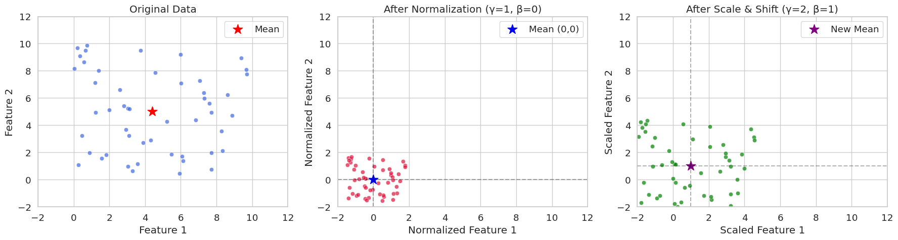 Backpropagation bei Batch-Normalisierung: (Herleitung weggelassen) Batch-Normalisierung normiert die Eingaben jeder Schicht, um Probleme mit verschwindenden oder explodierenden Gradienten zu mildern und das Lernen zu stabilisieren.