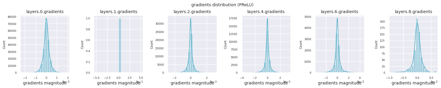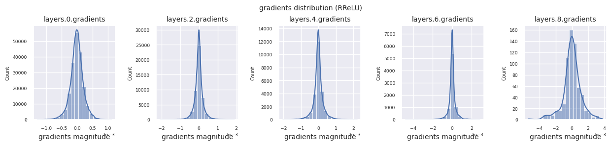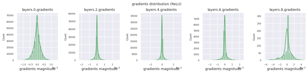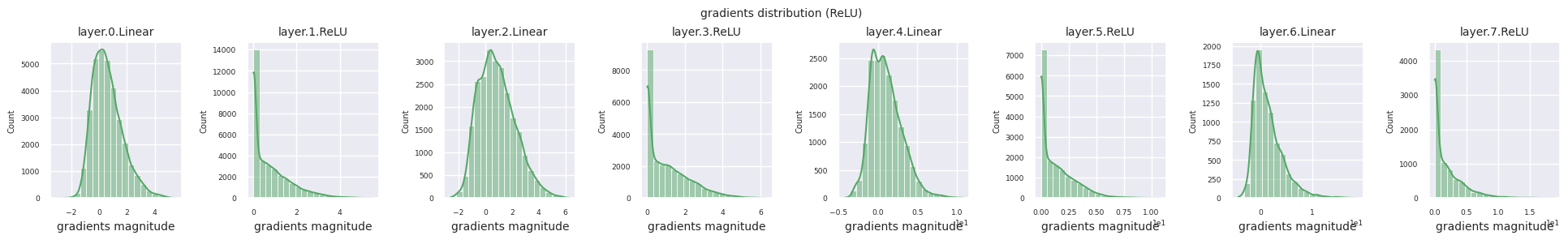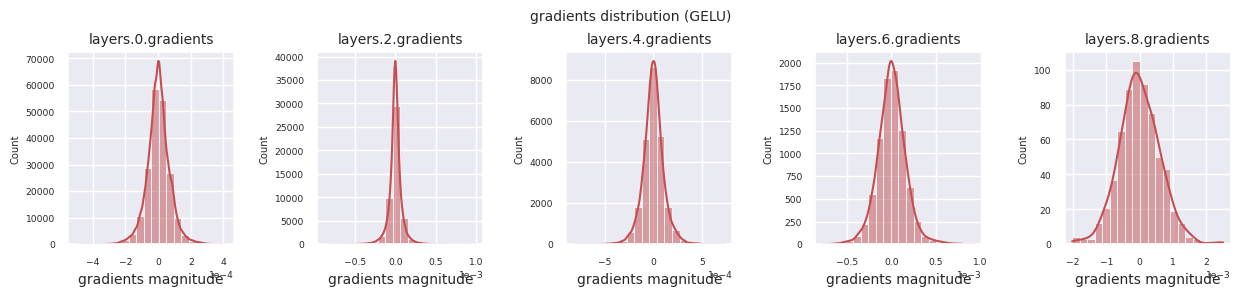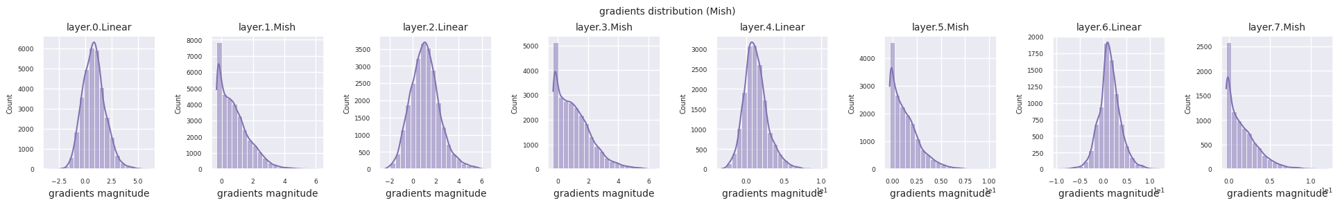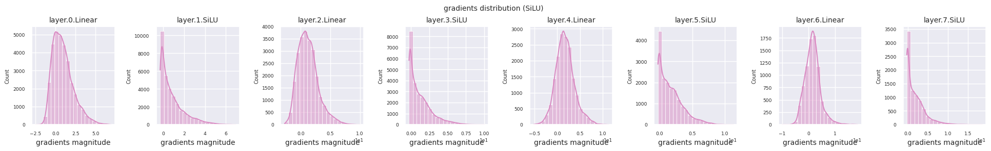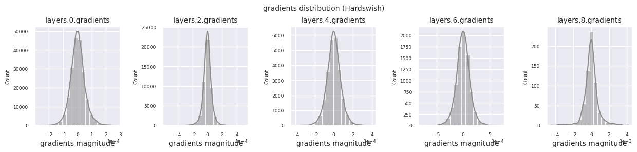 For each activation function, visualize the distribution of gradients during training and measure the ratio of “dead neurons”. (Use functions implemented in Chapter 1)