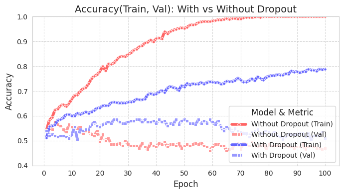 Dropout Ratio: (Code omitted) An appropriate dropout ratio can prevent overfitting and improve performance. Too high a ratio can cause underfitting.