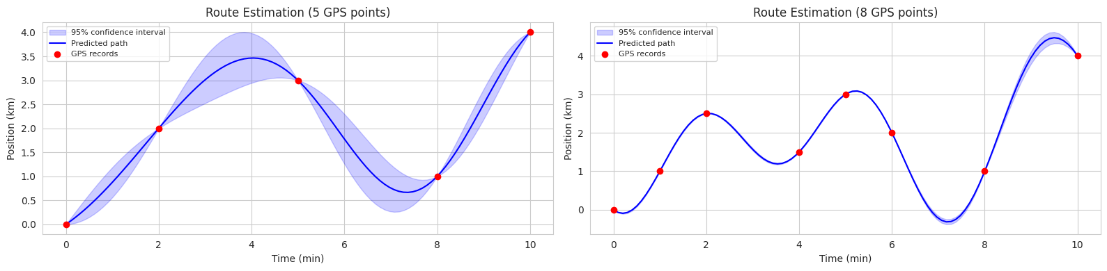 Gaussian Process: A probability distribution over functions. Define the covariance between function values using a kernel function. Calculate the posterior distribution based on given data to provide the mean and variance (uncertainty) of predictions.