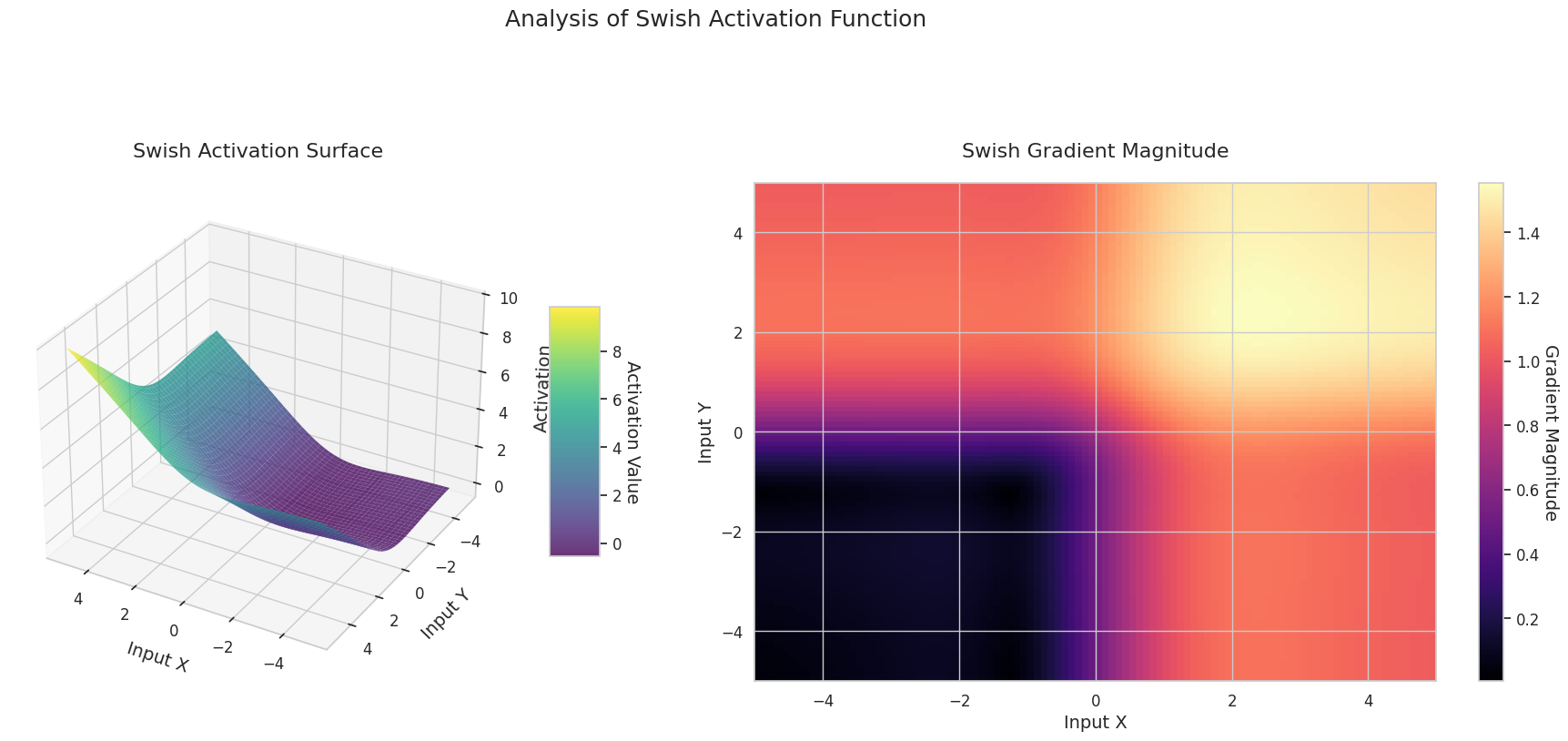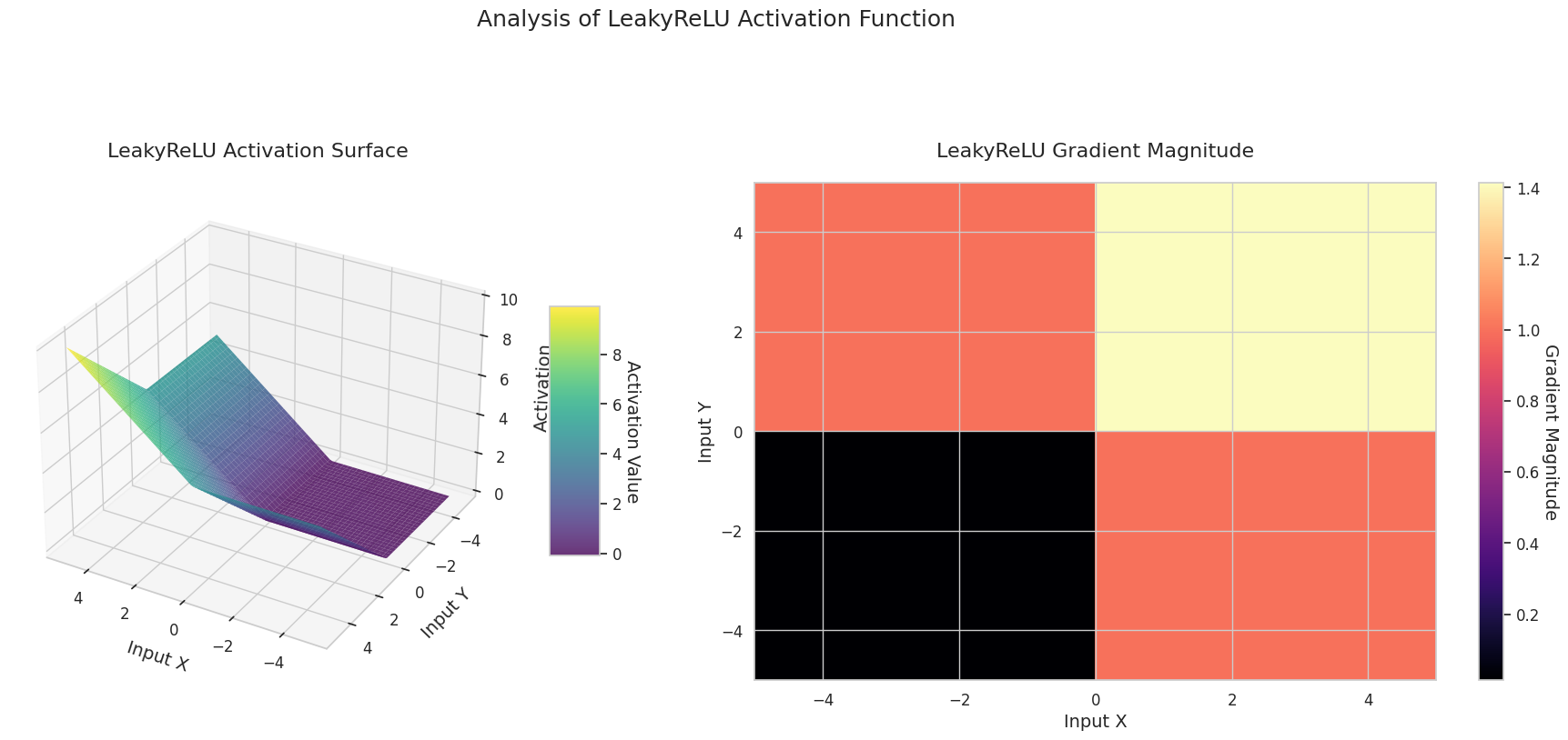Calculates the output surface of the activation function for two-dimensional