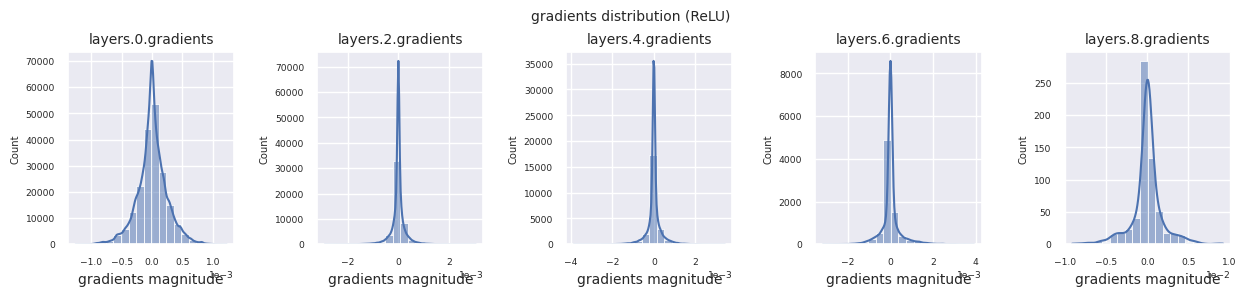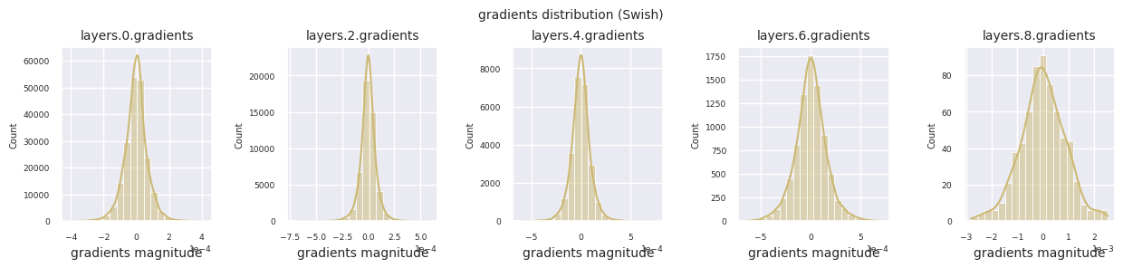 그래디언트 분포 시각화, “죽은 뉴런” 비율 측정: